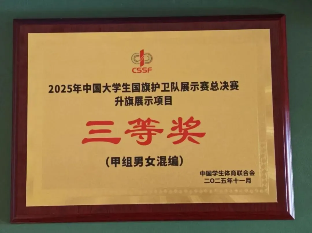11月28日,2025年中国大学生国旗护卫队展示赛(总决赛)于贵州遵义圆满落幕。我校国旗护卫队代表学校出征,与进入混编甲组决赛的19支国内高校队伍进行同场竞技。凭借过硬的军事素养、精湛的专业技能和昂扬的青春风貌。斩获两项殊荣!